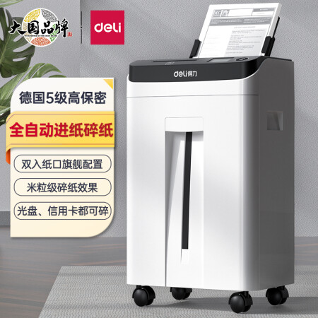 得力 deli 德國5級高保密 全自動(dòng)碎紙辦公家用文件粉碎機(jī) 雙入紙口 自動(dòng)進(jìn)紙 2m/min高速碎紙 14500